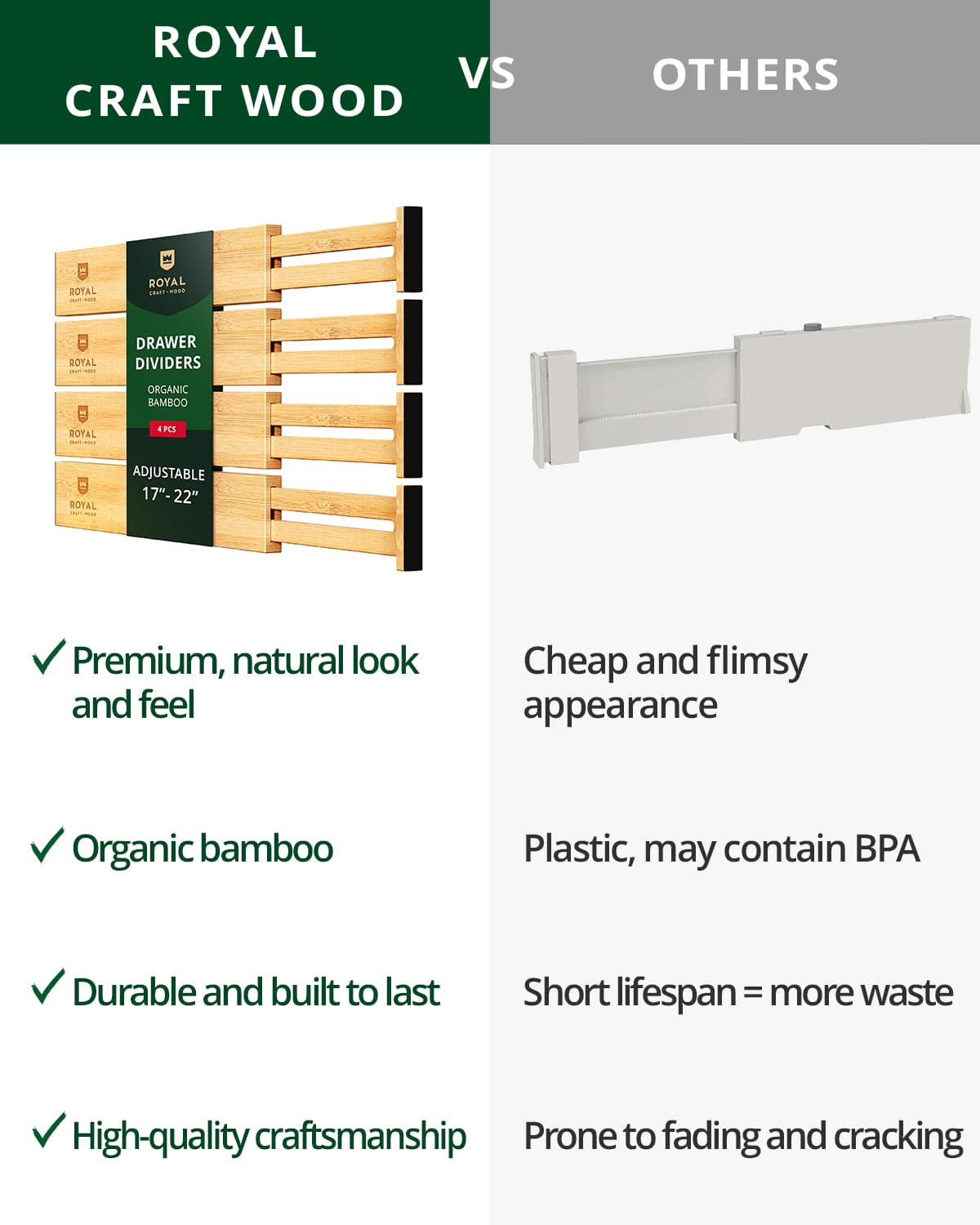 Drawer Dividers 22”, Natural